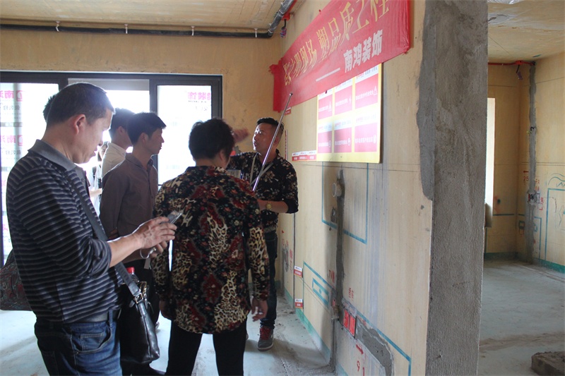 4月16日下午,杭州室外溫度高達31℃,太陽的熱情灼傷了行人的頭發。南鴻裝飾帶著20多組來自德信錢江府的業主坐著大巴來到城西金茂悅參觀南鴻在建工地的水電、泥工、木工、油漆四個環節,聽工程監理的講解,零距離觀察南鴻工地!離開工地后直奔君尚大酒店,聽各位設計師對錢江府的戶型分析講解,看免費設計方案!